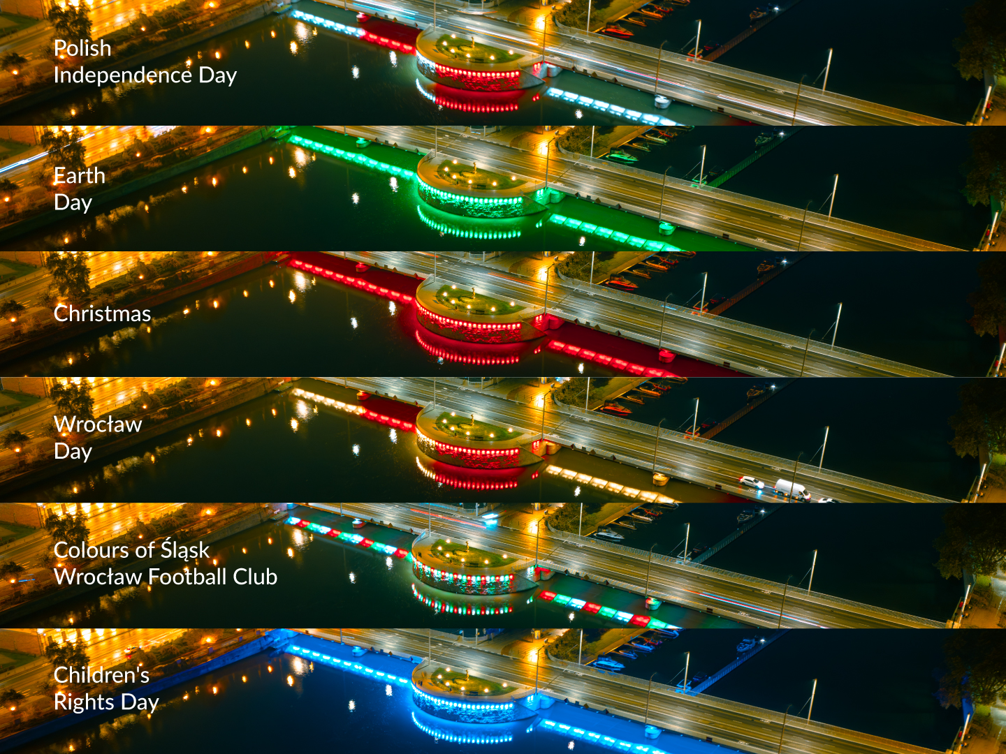During the extensive renovation, a concept emerged to breathe new life into the bridges and emphasise their role in the urban landscape. The concept of RGBW lighting, proposed by LUG Light Factory, was well received, and as a result, the bridges gained a new visual identity – they became an attractive feature of Wrocław's urban fabric, communicating with the city's residents.