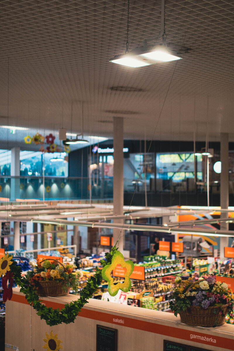 LUG luminaires are designed for versatile use in a wide range of retail spaces – from entrance areas, shopping aisles, checkouts, and display zones to back offices, offices, warehouses, and technical rooms. Thanks to a broad product portfolio, various mounting options (surface, recessed, track, suspended, outdoor), and extensive parameter configurations (optics, light color, CRI), LUG solutions work equally well in new retail facilities and during modernizations of existing stores.