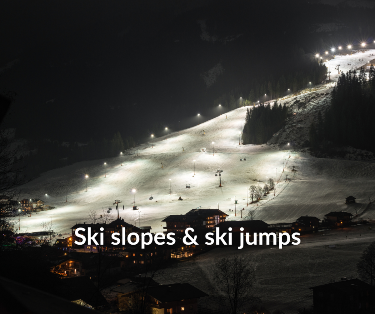 In sports lighting projects, LED luminaires with high luminous efficacy, precise optics and enhanced durability are used.