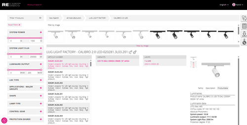 - Bezpośredni dostęp do danych fotometrycznych opraw LUG
